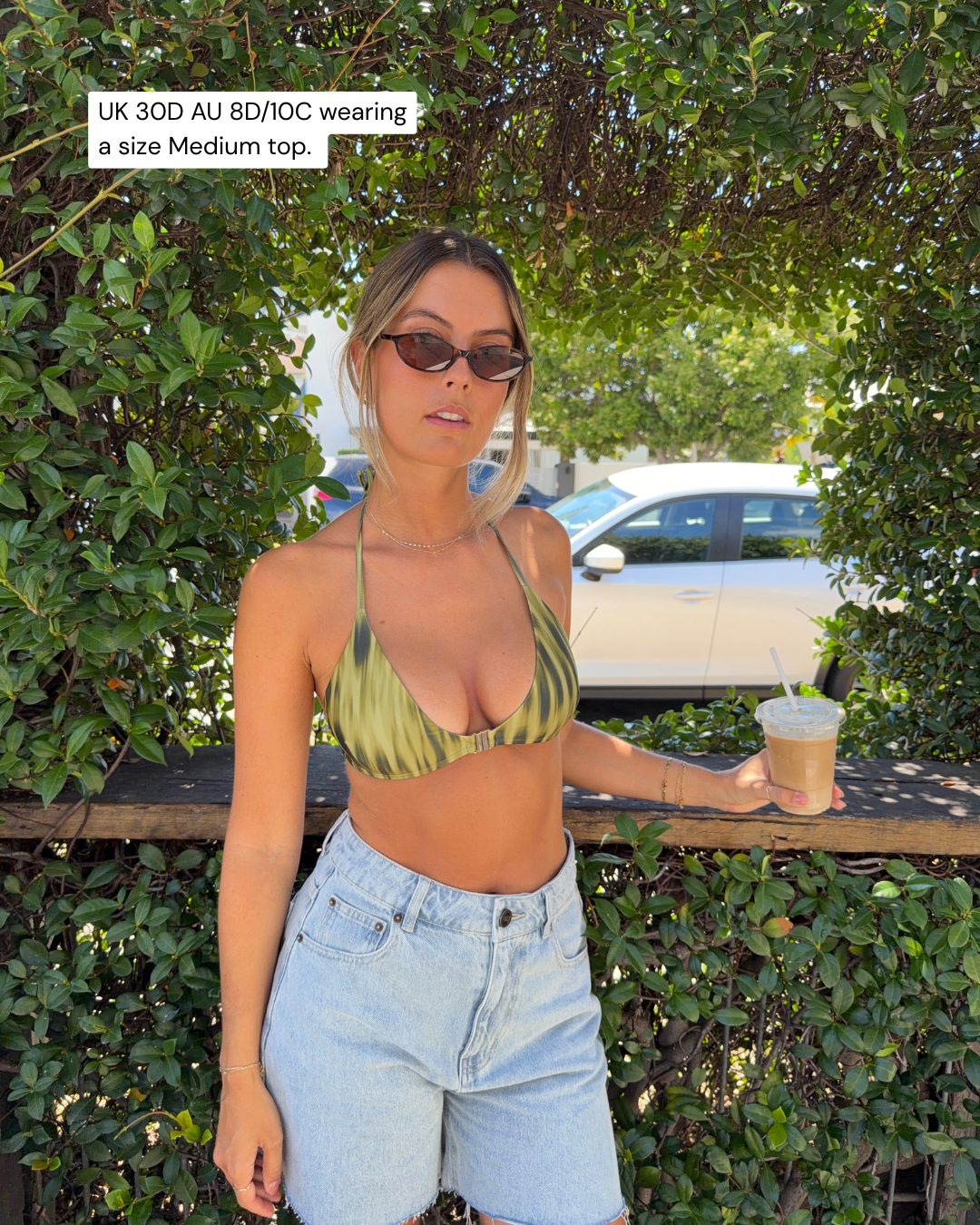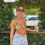 The Sarah Clip Front Bikini Top in Aurora is a fully adjustable green bikini top designed to lift, shape, and support across a wide range of bust sizes. Featuring a flattering clip-front neckline, tie halter neck, and adjustable back slider, this bikini top allows you to customise the fit to suit your body perfectly. Designed to support AA–E cups, Sarah offers a naturally secure feel that stays in place whether you’re swimming, moving, or lounging. Finished with removable soft padding and crafted from buttery-soft recycled Italian fabric with comfortable stretch, this bikini top is designed for confident, all-day wear.